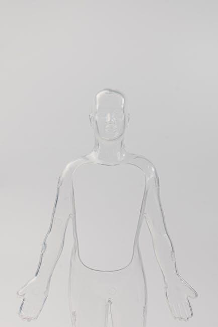 The manual emphasizes understanding the human body’s essential structures and their physiological roles. It covers the skeletal system, including bones and joints, and the muscular system, focusing on muscle types and movements. The nervous system is explored through neuron functions and reflexes, while the circulatory system highlights blood composition and vessel types. Respiratory and digestive systems are examined for their roles in gas exchange and nutrient absorption. The endocrine and urinary systems are discussed in terms of hormone regulation and waste removal. Each section connects structures to their functional roles, providing a clear link between anatomy and physiology to maintain homeostasis and overall bodily functions.